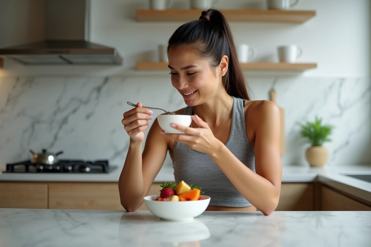 Le matin, tout commence dans l’assiette. Un petit-déjeuner à base de flocons d’avoine : voilà une base solide, qui diffuse son énergie sans à-coups. Ajoutez une banane pour le coup de boost, quelques graines de courge ou amandes pour la dose de magnésium et de protéines végétales. Cette association nourrit l’endurance et la concentration, sans jamais peser.